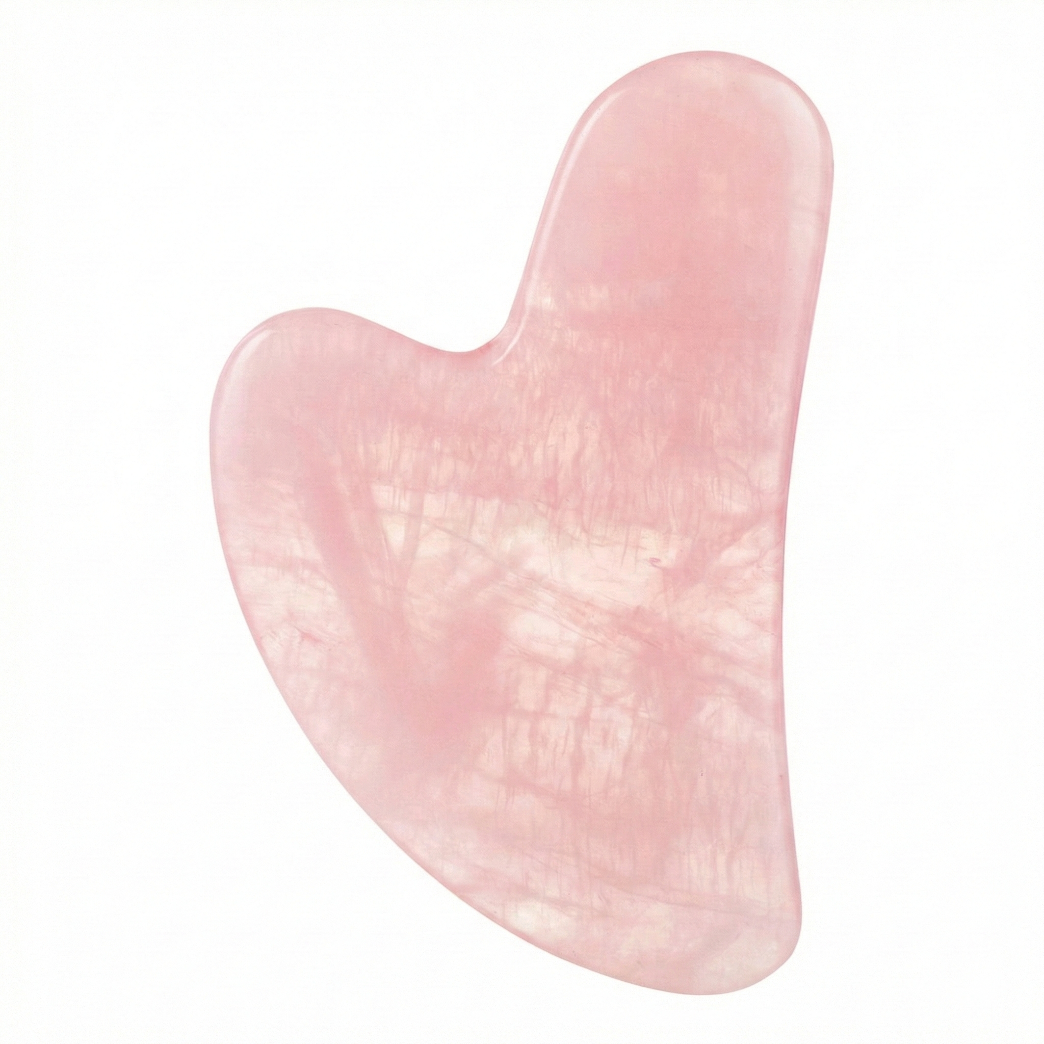 A massage tool inspired by traditional Chinese medicine (Gua Sha) and made from rose quartz for facial massage and facial relaxation.